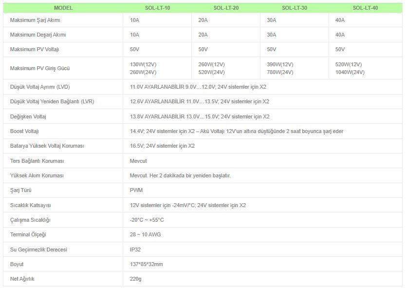 Solinved 20A PWM Şarj Kontrol Cihazı